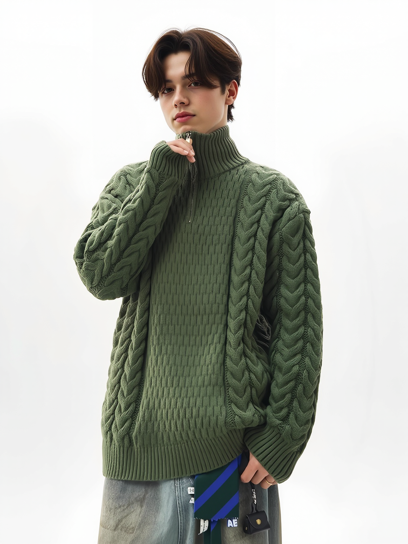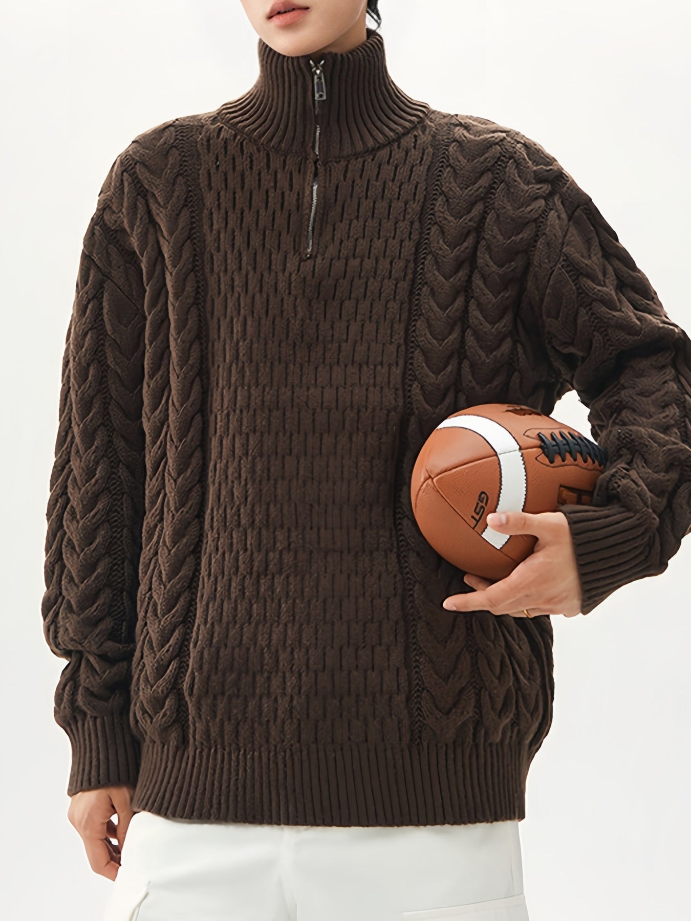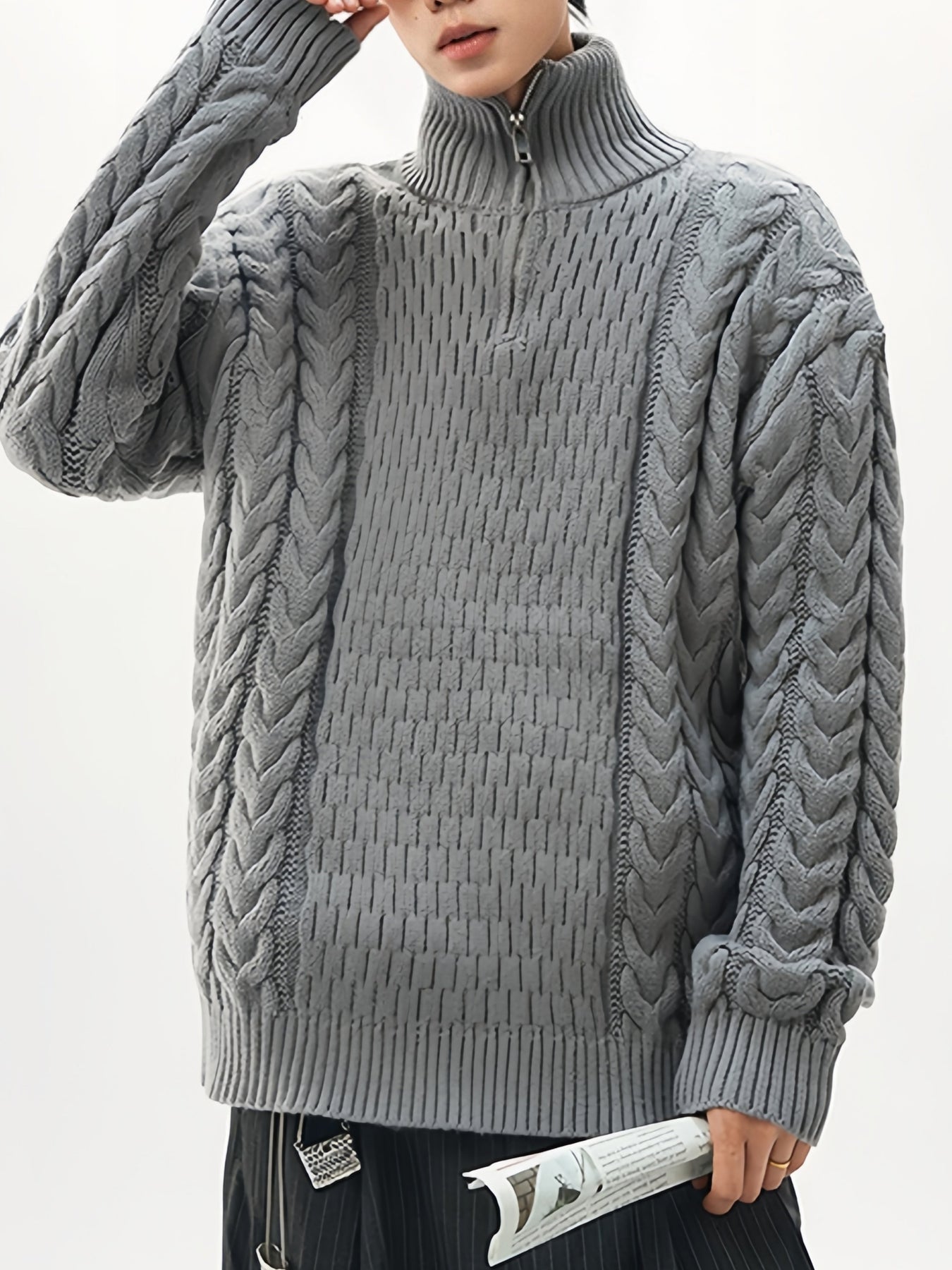 Coarse-pitted Fried Dough Twist Half Zipper Loose Hood Old Money Style Sweater
