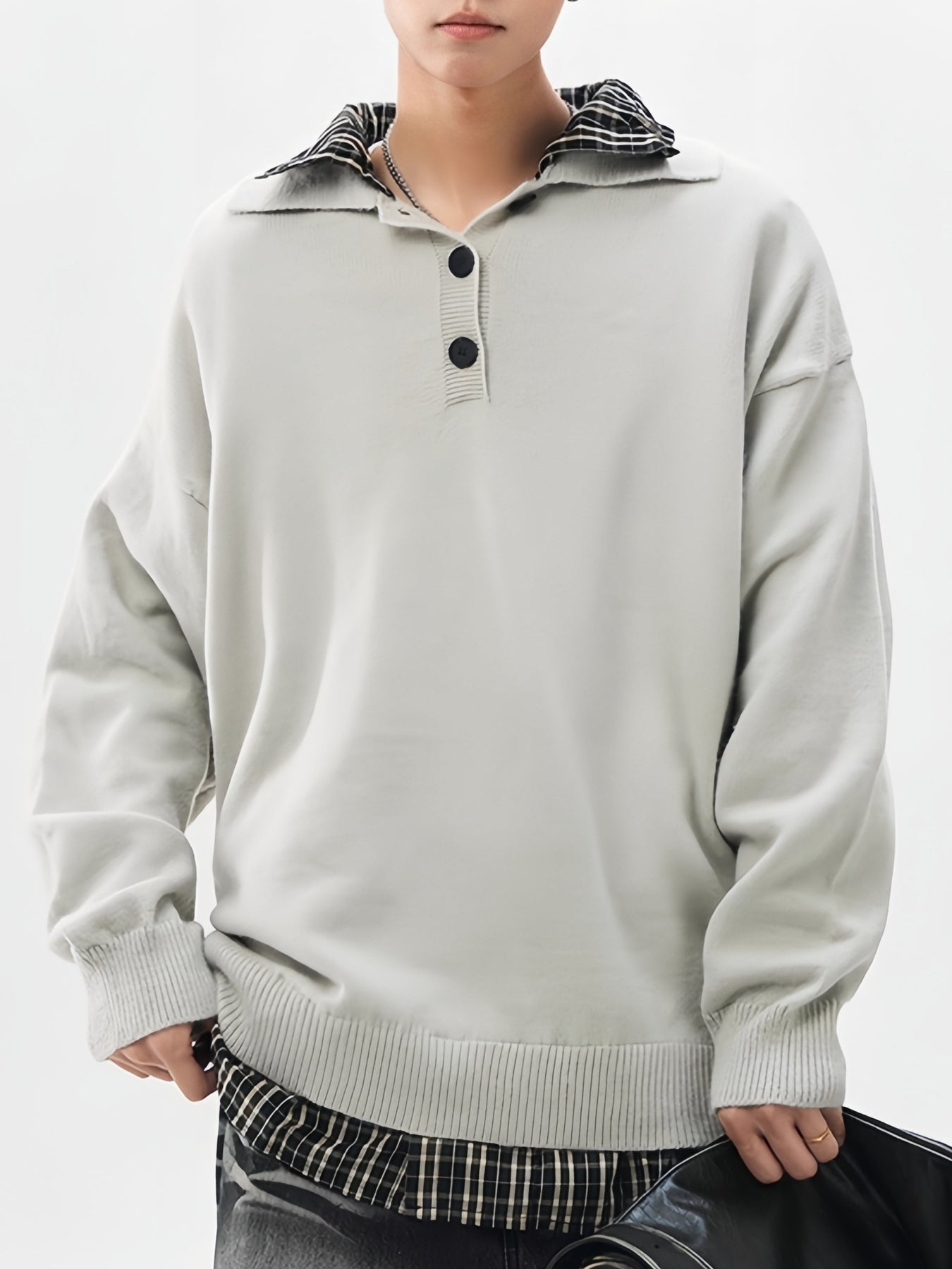 Retro Contrasting Colors Plaid Fake Two Pieces Splicing Sweater
