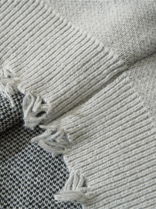 Dark Cross Jacquard Contrasting Colors Sutures Cut Destroy Sweater