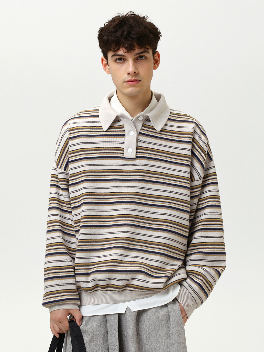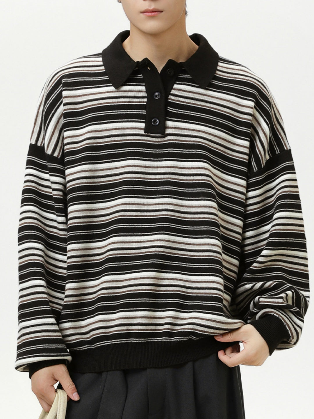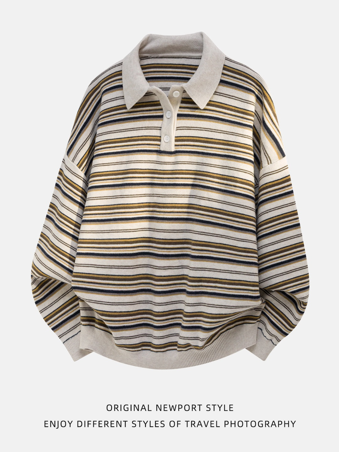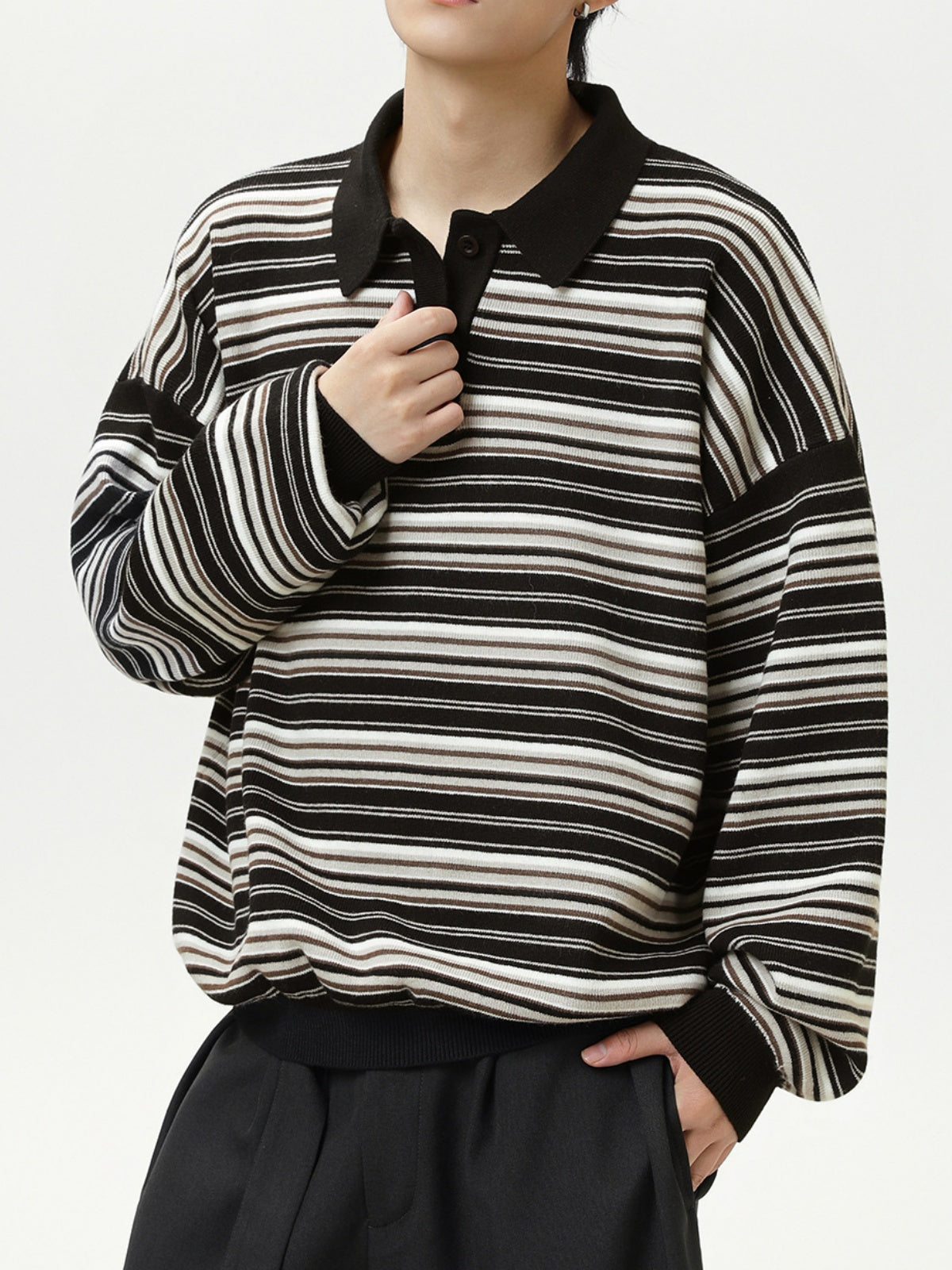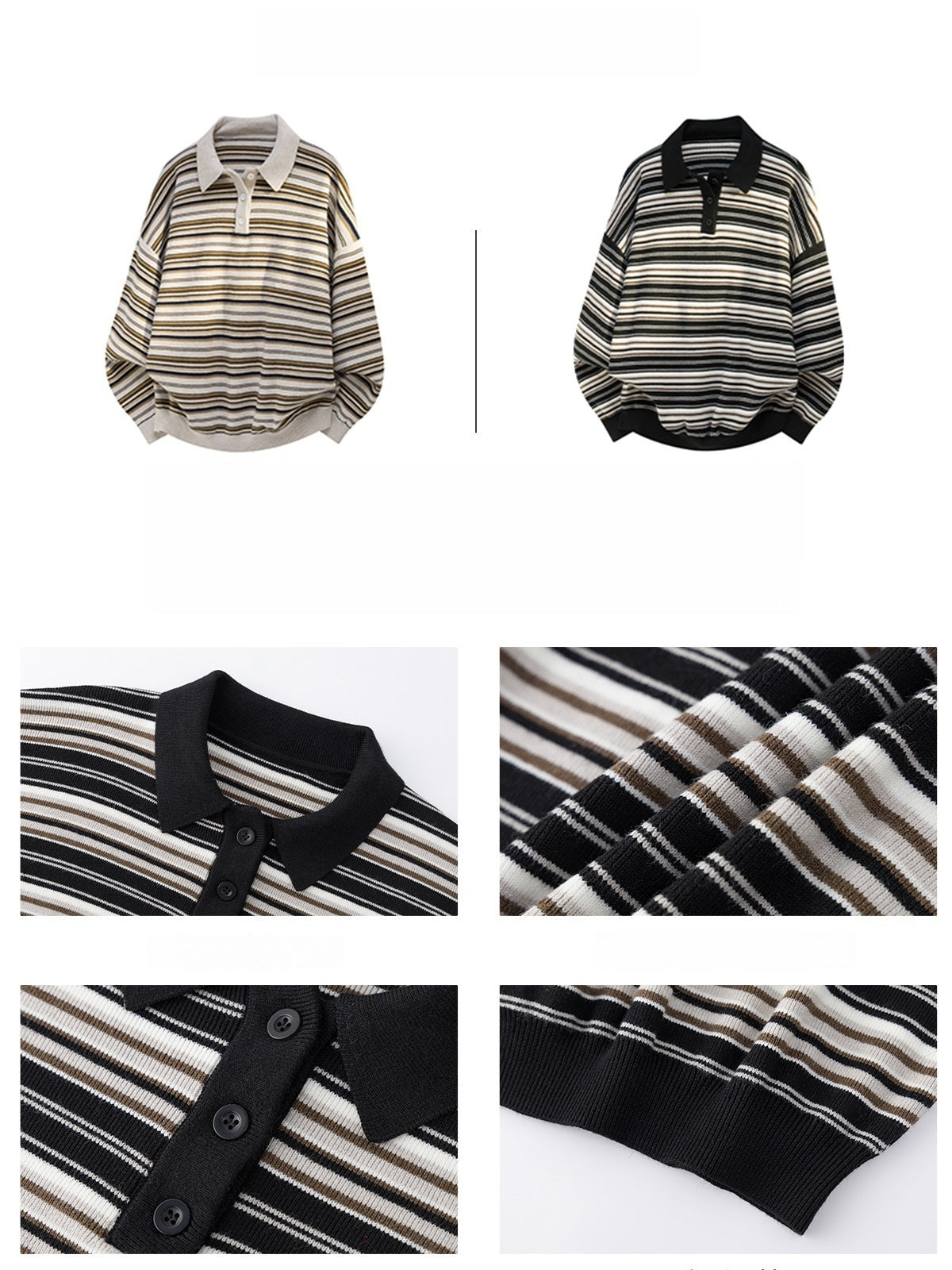Retro Contrasting colors Stripes Lapel sweater